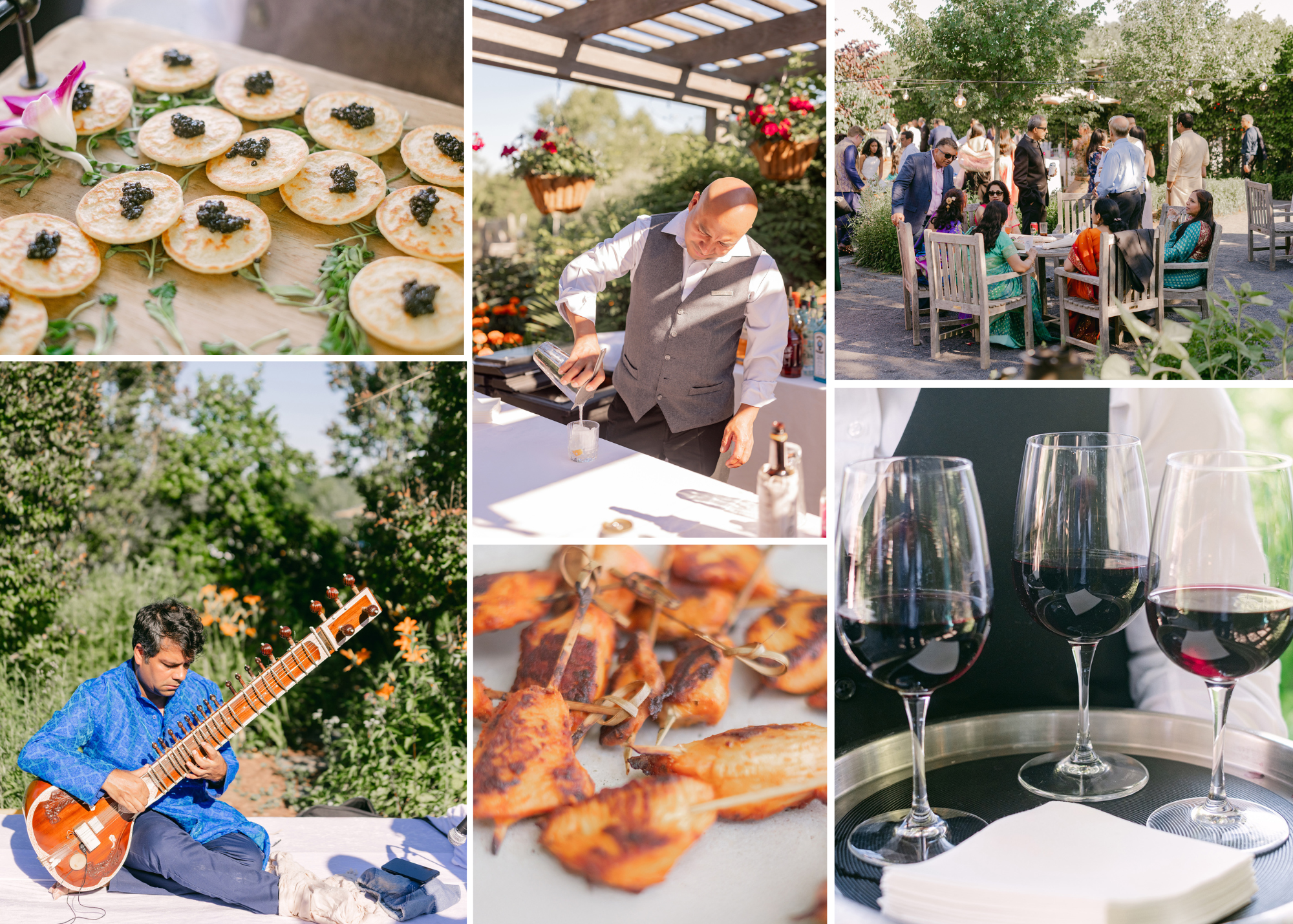 With the formalities complete and heartfelt vows exchanged, the celebration seamlessly shifted to cocktail hour in the garden. Friends and family mingled among blooming florals and charming pathways, sipping thoughtfully crafted drinks and soaking in the warm afternoon air. This part of the day felt like paradise, an open-air interlude where laughter echoed and joy was truly infectious.
